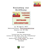im alten Postamt eröffnet. Der Raum ist Tag und Nacht geöffnet. Wer Lust hat, kann Bücher, Zeitschriften etc. mitnehmen und dafür welche zurückbringen. Die Zeitbank möchte damit vor allem einen Raum der Begegnung schaffen, einen Treffpunkt zum Schmökern und Plaudern.
