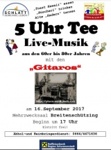 Am 14. September 2016 luden wir zum ersten "5 Uhr Tee" mit Livemusik ein. Am 15. September 2018 konnten wir bereits ein kleines Jubiläum mit dem 10. "5 Uhr Tee" in der Gemeinde Schlatt feiern.